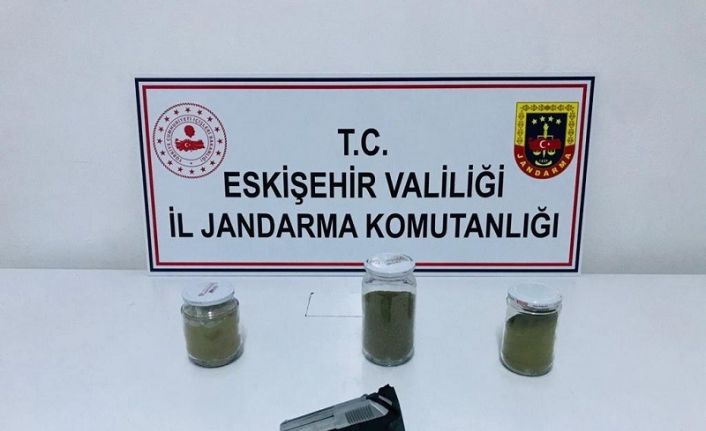Edinilen bilgiye göre, 7 Ocak 2021 günü M.K. ve Ş.M. isimli şahısların, ellerinde bulunan uyuşturucu maddeleri Bilecik’in Söğüt ilçesinden Eskişehir il merkezine getirerek satacakları öğrenildi. Eskişehir İl Jandarma Komutanlığı Kaçakçılık ve Organize Suçlarla Mücadele Şube Müdürlüğü (KOM) ve Çukurhisar Jandarma Karakol Komutanlığı ekiplerinin ortak operasyonu gerçekleştirildi. Şüpheli M.K. isimli şahsın kullandığı 43 plakalı araç Eskişehir ili sınırlarına girdiği andan itibaren takibe alındı. Takibe alınan araç jandarma uygulama noktasına yaklaştığında, araç içerisinden bir şeylerin atıldığının görülmesi üzerine şüpheli araç Eskişehir-Bursa karayolunun 27’inci kilometresinde durduruldu. Çevrede yapılan araştırmada, araçtan atılan 3 adet cam kavanozun içerisinde toplam 1 kilo 620 gram toz esrar bulundu. Araç içinde yapılan aramada ise 1 adet faturasız kurusıkı tabanca ele geçirilerek muhafaza altına alındı, şüpheliler M.K. ve Ş.M. yakalanarak gözaltına alındı.