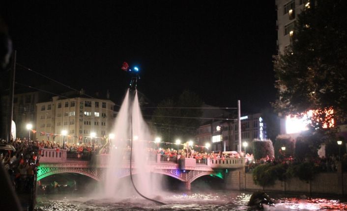 Eskişehir’in düşman işgalinden kurtuluşunun 97. yıldönümü kutlamaları kapsamında dün gece Porsuk Çayı’nda Fener Alayı geçit programı düzenlenirken, uçan kaykay gösterisi ise izleyenleri büyüledi.