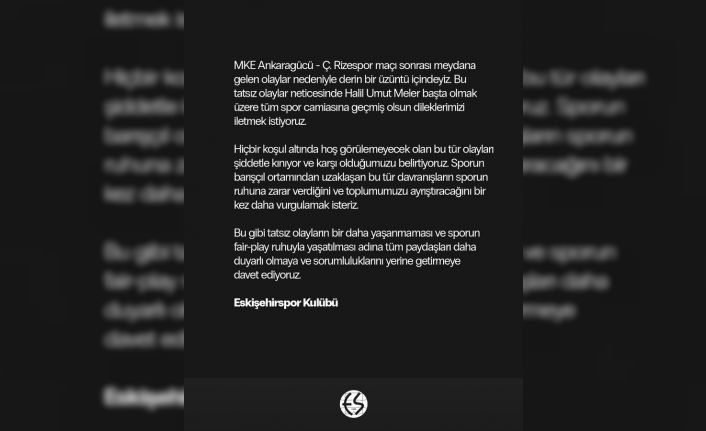 Eskişehirspor, Süper Lig’de MKE Ankaragücü-Çaykur Rizespor maçında yaşanan olaylara ilişkin bir kınama mesajı yayınladı.