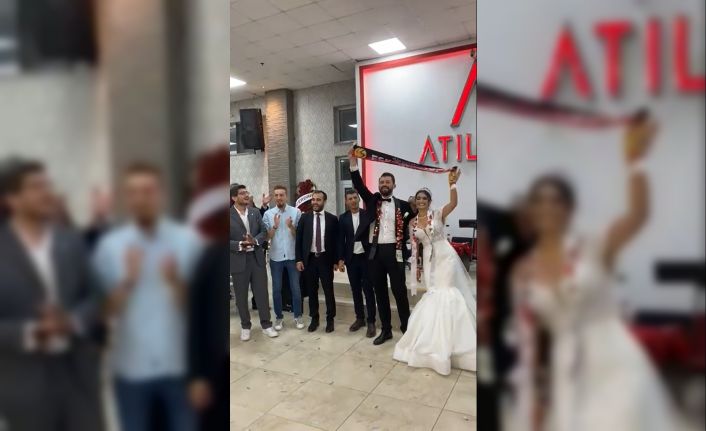 Eskişehir’de dünya evine giren Büşra Kahraman ve Emre Görgül çifti, düğünlerinde Eskişehirspor marşı söyleyip salonu adeta tribüne çevirdi.
