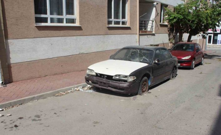 Eskişehir’de bir sokakta uzun zamandır park halinde duran, eski, plakasız ve camları kırık otomobil vatandaşlara merak konusu oldu.