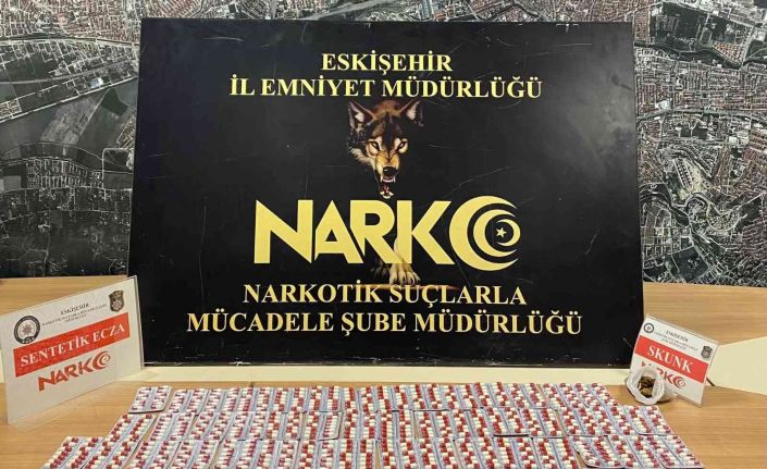 Eskişehir’de uyuşturucu satıcılarının yakalanmasına yönelik yapılan çalışmada, durdurulan bir araç içerisinden bin 63 adet galara sentetik ecza hap ve 66,66 gram esrar ele geçirildi.