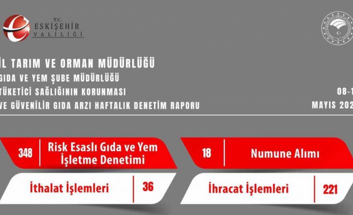 Eskişehir Valiliği, İl Tarım ve Orman Müdürlüğü Gıda ve Yem Müdürlüğü ekiplerince 8-14 Mayıs 2025 tarihleri arasında yapılan çalışmalarla ilgili verileri paylaştı. Tüketici sağlığının korunması ve güvenilir gıda arzı haftalık denetim raporunda yer alan bilgilere göre; 348 risk esaslı gıda ve yem işletme denetimi, 36 ithalat işlemleri, 18 numune alımı ile 221 ihracat işlemleri gerçekleştirildi. Ekiplerin çalışmaları sonucunda, 4 idari yaptırım ve 2 milyon 381 bin 979 TL para cezası uygulanırken, 1 toplatma kararı alındığı belirtildi.