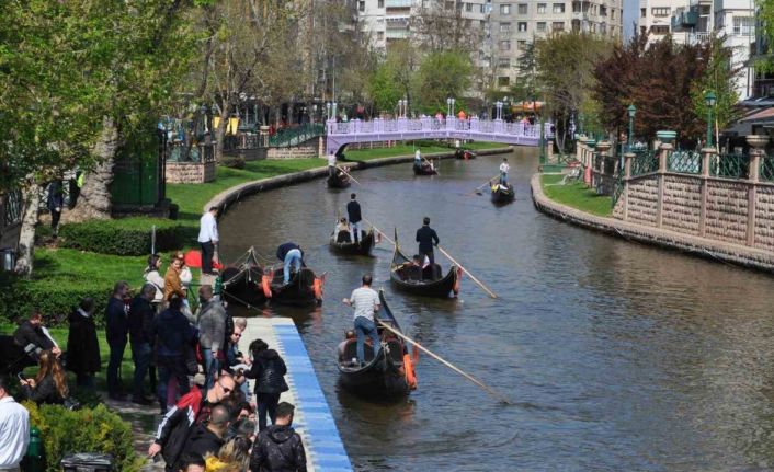 Bayram için Eskişehir’e gelen vatandaşlar Porsuk Çayı’nda düzenlenen gondol seferlerinde yoğunluk oluşturdu.