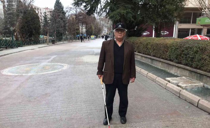 Eskişehir’de görme engelliler, üyesi oldukları derneğin önünde hissedilebilir zeminin (sarı çizgi) olmamasından dertli.