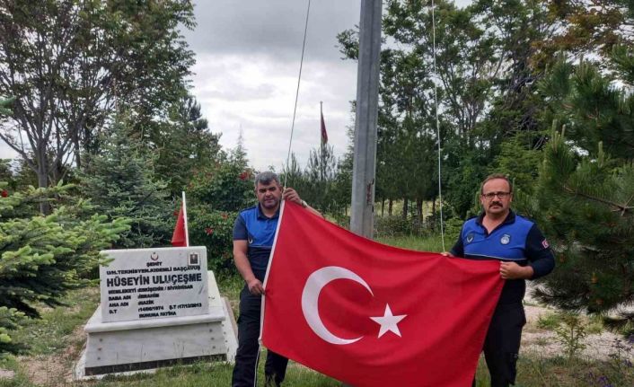 Günyüzü’nde şehit mezarlarının bayrakları zabıtalar ekiplerine emanet.