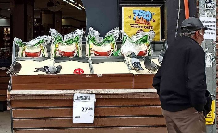Odunpazarı İlçesi Porsuk Bulvarı üzerinde bulunan bir süper marketin önündeki tezgâhta satışa sunulan pirince güvercinler dadandı. Vatandaşa satılan pirincin üzerinin açık olmasını fırsat bilen 5 güvercin, ürünleri yemeye başladı. Güvercinler gönüllerince karınlarını doyururken, akıllara hijyen açısından çeşitli sorular takıldı.