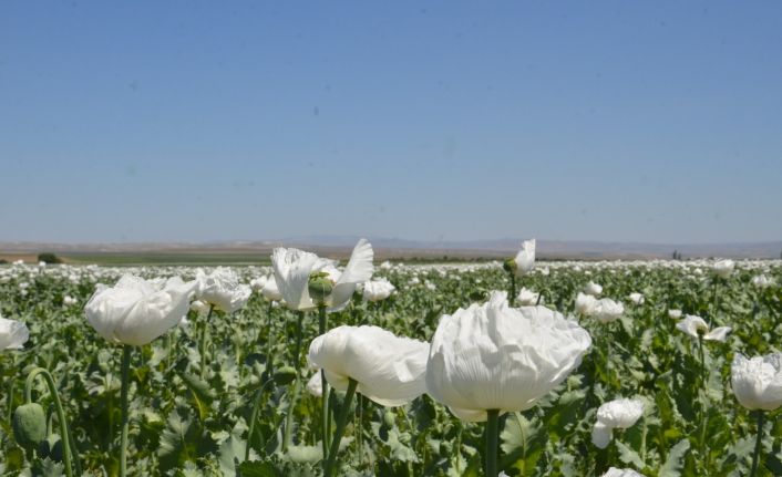 Günyüzü ilçesinde haşhaş tarlaları çiçek açtı.