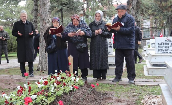 Yapılan duanın ardından Vali Ayyıldız, Muharip Hava Kuvveti Komutanı Kadıoğlu ve Belediye Başkan Vekili Ünal, şehitlik defterine yazılanları imza altına aldı.