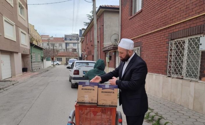 Eskişehir’de bisikletiyle kapı kapı gezerek, ihtiyaç sahiplerine yardım eden imam Soner Şahin, Ramazan’da da ihtiyaç sahipleri için pedal çevirmeye devam ediyor.