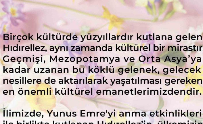 "Hıdırellez Günü’nü kutluyor, sağlıklı ve huzurlu günler diliyorum"