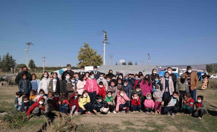 İlkokul öğrencileri çadırda yaşayan mevsimlik işçileri ziyaret etti