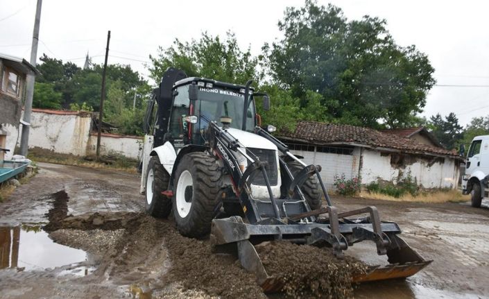 İnönü Belediyesi ekipleri, hafta içi etkili olan sağanak yağışlar sonrası mahallelerde çamur ve molozlarla kapanan yolları iş makineleri ile temizledi