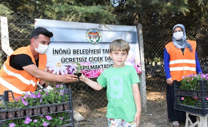 İnönü Belediyesi, Kurban Bayramı arefesinde mezarlık ziyaretinde bulunan vatandaşlara kabirlere dikmeleri için çiçek dağıtımı yaptı.