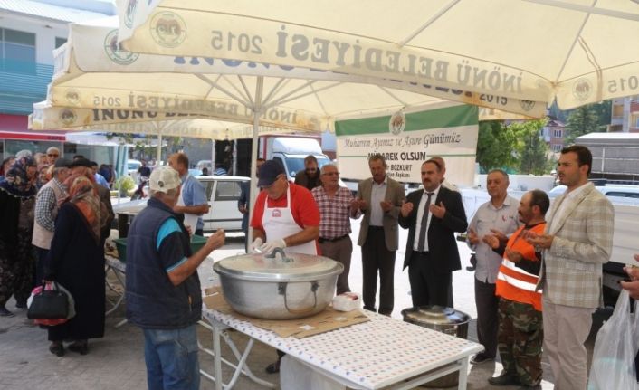 Muharrem ayı dolayısıyla İnönü Belediyesi kapalı pazaryerinde ilçe sakinlerine aşure ikram etti.