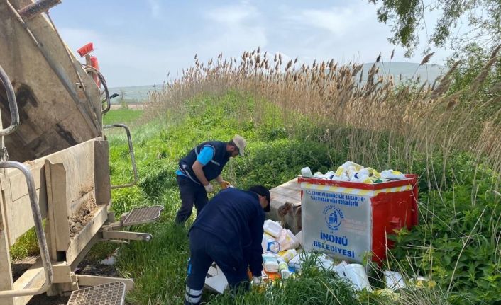 İnönü Belediye Başkanlığı ilçe genelindeki çevreci çalışmalarını titizlikle sürdürüyor. İlçe genelinde çevreyi koruma ve çevre dostu anlayışı çalışmaları ile örnek olan İnönü Belediyesi, çiftçilerin kullanmış oldukları zirai ilaç kutularının toplanması için özel hazırlattığı çöp konteynırlarının temizliğini düzenli olarak gerçekleştiriyor. Zirai ilaç kutularının doğaya zarar vermeden toplanmasını sağlayarak çevreyi koruyor. Çevre dostu anlayışıyla daha yeşil ve daha güzel bir İnönü için çalışmalarına titizlikle devam ettiklerini belirten İnönü Belediye Başkanı Kadir Bozkurt, "Çevreci belediyecilik anlayışıyla çalışmalarımızı sürdürüyoruz. Bizim temel amacımız çöpü en kısa sürede alarak çevre ve sağlık açısından olumsuz olabilecek koşulları önlemek. Zirai ilaç kutularının toplamasını gerçekleştirirken hemşehrilerimizin rahatsız olmaması ve doğaya zarar gelmesini önleyerek, daha yaşanılabilir bir İnönü için çalışmalarımız devam edecek” ifadelerini kullandı.