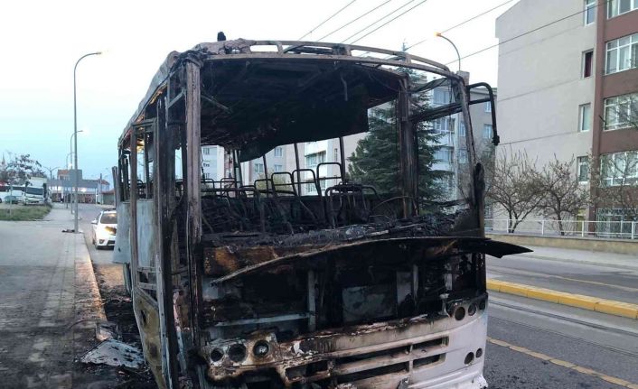 Eskişehir’de seyir halindeyken alev alev yanan minibüs, itfaiye ekiplerince söndürüldü.