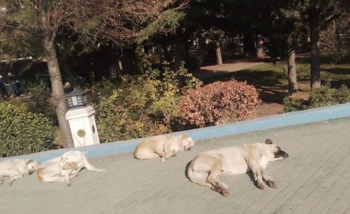 Kış mevsimi yurt genelinde etkisini sürdürüyor. Soğuk havalar insanlar gibi sokak hayvanlarını da etkilerken, Odunpazarı İlçesi’nde bulunan Alaattin Parkı’nın önündeki kaldırımda güneşlenen sokak köpekleri göze çarptı. Güneş ışığı ile ısınmaya çalışan sevimli hayvanlar, çevreden geçen vatandaş tarafından fotoğraflandı.