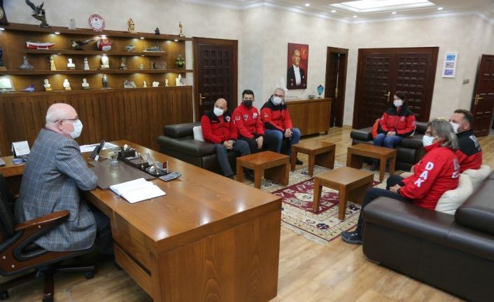 Ziyarete DAK ekibinden; Arif Necmi Türe, Ümit Avcı, Mehmet Hakan Döner, Ercan Temel, Elif Turan ve Mürsel Turan’ın katıldı. İzmir’de gerçekleştirdikleri arama kurtarma çalışmaları hakkında Başkan Kurt’a bilgi veren DAK üyeleri, Depremin birinci günü İzmir’e ulaşıp saat 23.00 itibari çalışmalarını başlattıklarını söyledi. Öncelikle yıkılan bir AVM binasında, ardından da Barış Apartmanında arama kurtarma çalışmaları yaptıklarını kaydeden DAK üyeleri, 34 saat aralıksız süren arama kurtarma çalışmalarında enkazdan 3 vatandaşımızı sağ olarak çıkardıklarını belirtti.