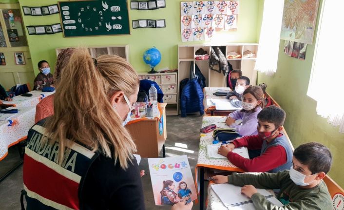 Jandarma ekipleri okullarda bulunan 75 öğrenciye kişisel güvenlik önlemleri hakkında bilgi verdi.