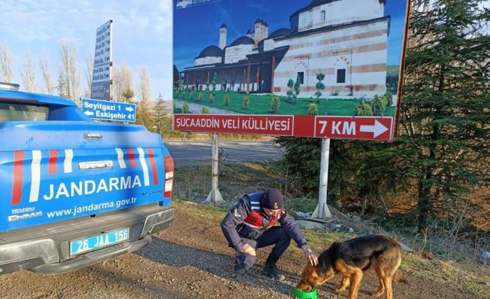 Eskişehir’de kırsal alanda yaşayan sokak hayvanlarına jandarma ekiplerince mama ve su dağıtıldı.