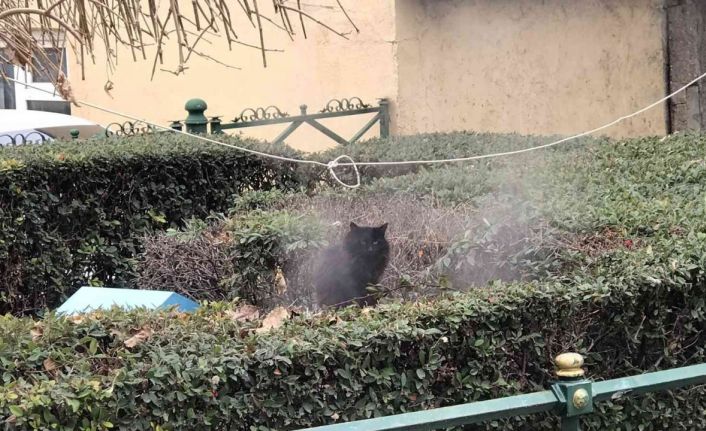 Eskişehir’de jeotermal suyunun buharı ile ısınmaya çalışan sevimli kedinin şirin halleri renkli görüntülere neden oldu.