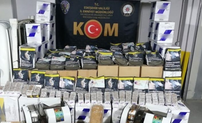 Eskişehir Cumhuriyet Başsavcılığı koordinesinde İl Emniyet Müdürlüğü Kaçakçılık ve Organize Suçlarla Mücadele (KOM) ekiplerince kaçak tütün ve tütün mamullerini piyasaya sürmeye çalışan şahıslara yönelik operasyon düzenlendi. Operasyonlar sonucunda Tepebaşı ilçesinde bulunan farklı adreslerde yapılan aramalarda; 5 kompresörlü sigara sarma makinesi, 57 bin 160 dal sarılmış sigara, 612 bin 800 dal boş makaron, 287 kilogram tütün, 18 sökülmüş TAPDK bandrolü, 24 sahte tütün ambalajı, 1 adet tabanca ve 1 adet av tüfeği ele geçirildi. Operasyonlarda 5 şüpheli yakalanarak gözaltına alındı.