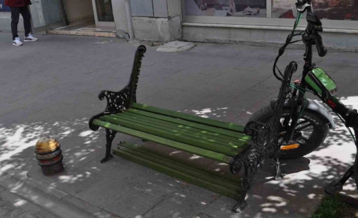 Eskişehir’deki bir ara sokağın kaldırımında bulunan banklar kimliği belirsiz kişiler tarafından kırıldı.