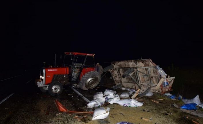 Edilen bilgiye göre, Eskişehir-Konya karayolu üzerinde R.V. yönetimindeki 42 GT 098 plakalı kamyon ve H.B. idaresindeki 26 AD 312 plakalı traktör çarpıştı. Çarpmanın etkisiyle, traktörün römorku devrilirken, içindeki torbalar yola saçıldı. Kamyon ve traktörde maddi hasar meydana geldi. İhbar üzerine olay yerine trafik ve sağlık ekipleri sevk edildi. Olayla ilgili inceleme başlatıldı.