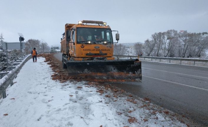 Sabah saatlerinden itibaren beyaza bürünen Eskişehir-Kütahya karayolunda kar küreme ekiplerinin karla mücadelesi devam ediyor.