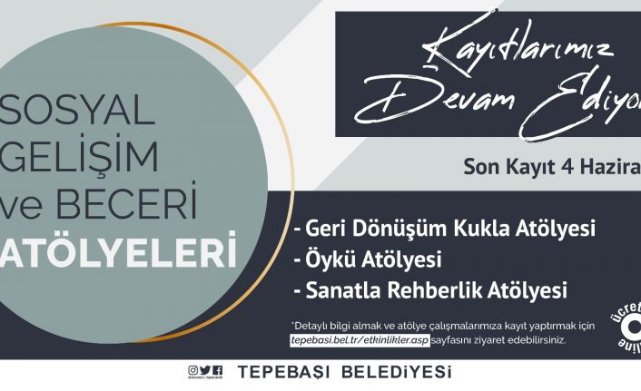 Eskişehir Tepebaşı Belediyesi’nin online olarak düzenlediği Sosyal Gelişim ve Beceri Atölyeleri için kayıtların 4 Haziran’a kadar devam edeceği kaydedildi.