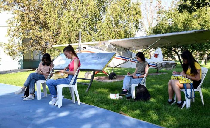 Zeynep Gül Bağan’ın eğitmenliğindeki atölyede katılımcılar, ilk olarak Tepebaşı Belediyesi Atila Özer Karikatürlü Ev’in, ardından Varlığınız Sağlığımız Anıtı’nın çizimlerini yapmıştı. Atölyenin gerçekleştiği son adres ise Vecihi Hürkuş Havacılık ve Teknoloji Parkı oldu. Gençler, açık havada düzenlenen etkinlikte hava araçlarını resmetti.