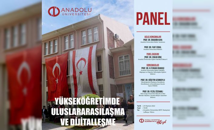 Anadolu Üniversitesi Açıköğretim Sistemi, 40. kuruluş yıl dönümü etkinlikleri çerçevesinde Kuzey Kıbrıs Türk Cumhuriyeti’nde (KKTC) “Yükseköğretimde Uluslararasılaşma ve Dijitalleşme” paneli düzenleniyor.