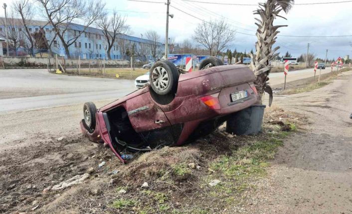 Eskişehir’de yağış sebebiyle kayganlaşan yolda kontrolden çıkıp takla atan otomobilde bulunan 3 kişi, kazayı şans eseri yara almadan atlattı.
