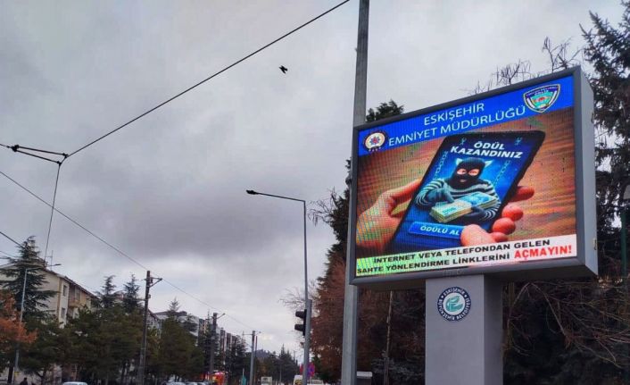 Eskişehir’de polis ekiplerince hazırlanan hırsızlık ve dolandırıcılık konulu dijital uyarı metinleri, kentteki LED ekranlara yansıtılmaya başlandı.