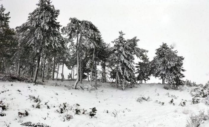 Eskişehir’i Mihalıççık ilçesinde etkili olan kar yağışı hava sıcaklığını düşürürken, ormanlık alanda kartpostallık manzaralar oluşturdu.