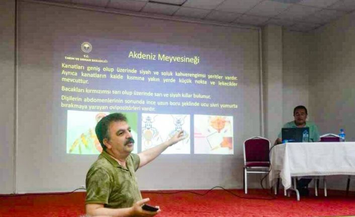 “Akdeniz Meyve Sineği Ari Alan Projesi” hakkında bilgi veren proje yürütücüsü Ziraat Mühendisi Ayan Mihalıççık ilçesinde ariliğin devam ettirilmesinin önemi, kirazda ekonomik zarara sebep olan hastalık ve zararlılar hakkında bilgilendirme sunumu yaptı.