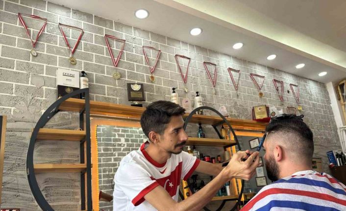Milli maç heyecanıyla müşterilerini traş ediyor