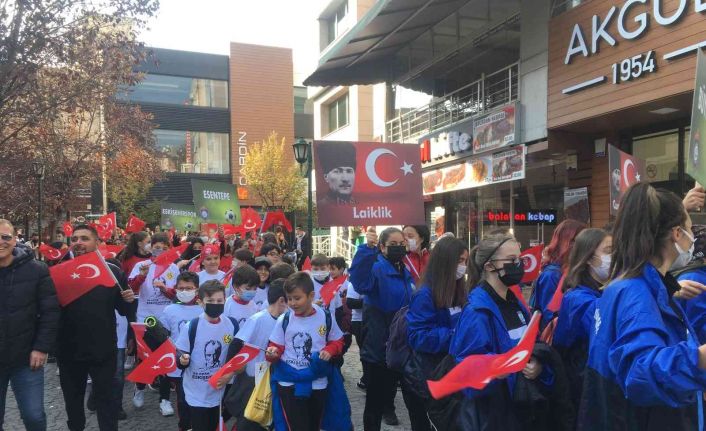 Türkiye Cumhuriyeti’nin 98’inci kuruluş yıl dönümü dolayısıyla bir araya gelen minik sporcular, yürüyüş gerçekleştirdi.