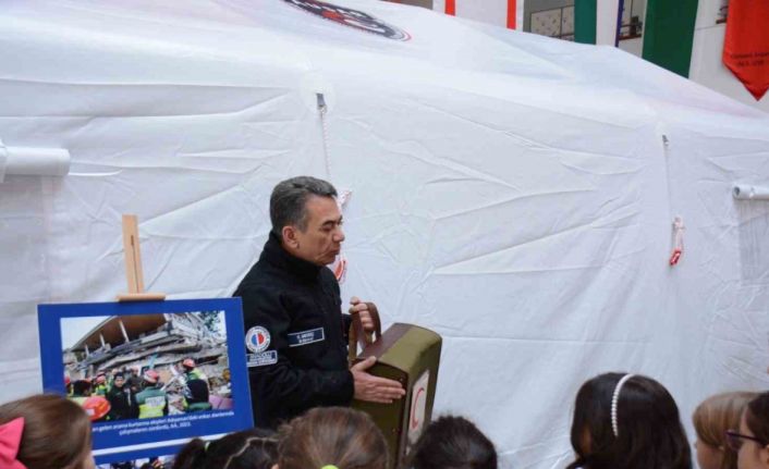 AUSAR Ekip Lideri Dr. Öğr. Üyesi Ekrem Meriç eğitimde afetlere hazırlıklı olmanın önemine dikkat çekerek, küçük yaşta kazanılan bilincin hayat kurtarıcı olabileceğini ifade etti. Öğrencilere afet anında nasıl davranmaları gerektiği yaş seviyelerine uygun bir anlatımla aktarıldı.
