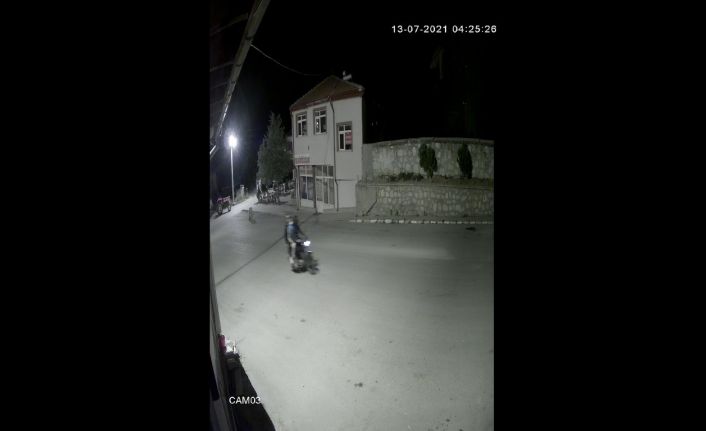 Eskişehir’de motosiklet çalan hırsızlar, bir iş yerinin güvenlik kamerasına yansıdı.