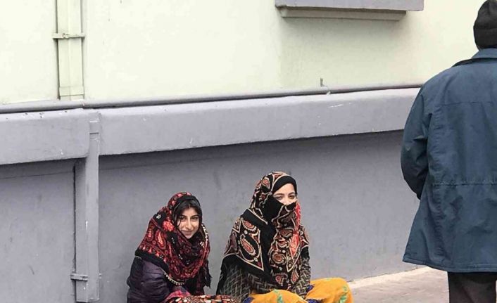 Eskişehir’in en işlek caddelerinden birinde soğuk zemine oturarak dilenen iki genç kadın, birbirleri ile sohbet edip sık sık gülerek gelip geçenlerden avuç açıp para istediler.