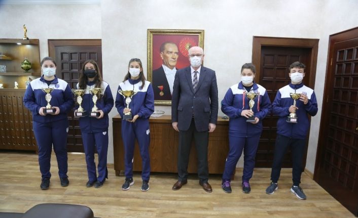 Genç atletlerin ziyaretinin kendisini çok mutlu ettiğini söyleyen Başkan Kurt, Odunpazarı Belediyesi olarak sporu ve sporcuları desteklemeye devam edeceklerini belirtti. Özellikle gençleri spora teşvik etmek için çalışmalar gerçekleştirdiklerini ifade eden Başkan Kurt, “Sizin bu başarınız, arkadaşlarınıza örnek olacak. Biz, her zaman yanınızda olacağız. Başarılarınızdan büyük bir kıvanç duydum. Yolunuz açık, başarılarınız da daim olsun” diye konuştu.