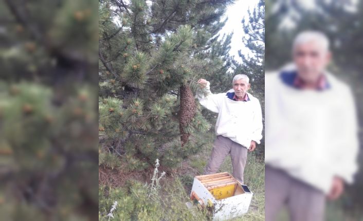 Oğul veren arılar çam ağacının üzerinde ilginç görüntü oluşturdu
