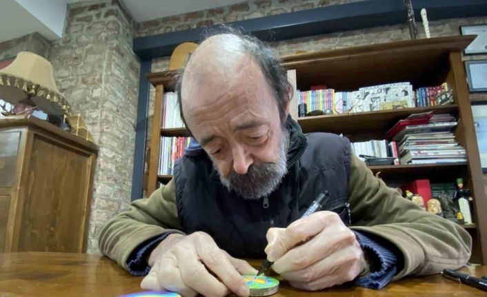 Eskişehir’de eskiden karikatürcü olan ve hala severek çizim yapmaya devam eden 60 yaşındaki Furkan Tangüner, çini mürekkebi ile üzerine ilginç resimler ve desenler yaptığı süs ürünleri ile kendisine ek gelir kaynağı oluşturdu.