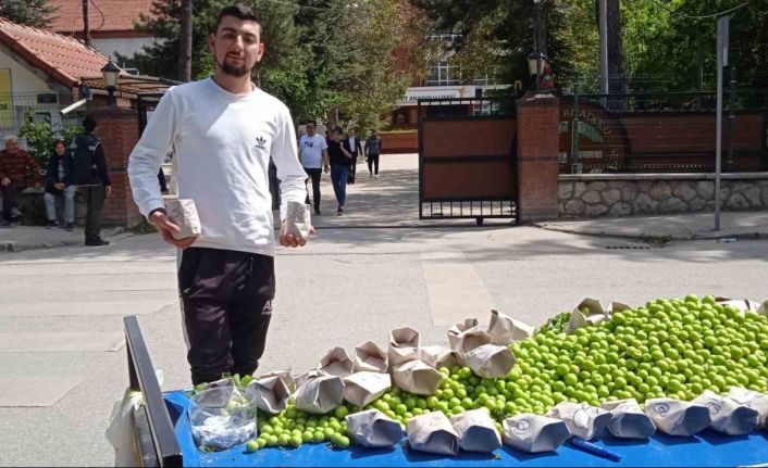 Sabah saatlerinde başlayan oy kullanma işlemi Eskişehir’de devam ediyor. Vatandaşlar oyunu kullanarak vatandaşlık görevini yerine getirirken, Emir Öz ismindeki erik satıcısı, havanın da güzel olmasını fırsat bilerek oy kullanılan bir okulun önüne tezgâh açarak satış yapmaya başladı. Oyunu kullanan vatandaşlar, okul çıkış kapısının önüne kurulan erik tezgahından eriklerini alarak evlerinin yolunu tutarken, 23 yaşındaki esnaf Öz, okul önlerinde oy kullanan vatandaşların yoğun olacağını düşünerek bugün de tezgâh açtığını belirtti. Satıcı Öz, “Okul önüne gelip satış yapıyorum. Ekmek paramızı kazanmak için geldim. Vatandaşlar oyunu kullandıktan evlerine giderken paket eriğini alıp gidiyorlar. Oy kullanma saati bitene kadar tezgâhım burada kalacak. İnşallah vatana millete hayırlı bir seçim olur” diye konuştu.