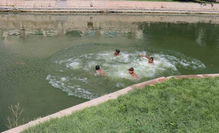 Eskişehir’de sıcaktan bunalan bir grup genç serinlemek için Porsuk Çayı’na atlarken, o anlar vatandaşların hayret dolu bakışları altında kameralara yansıdı.