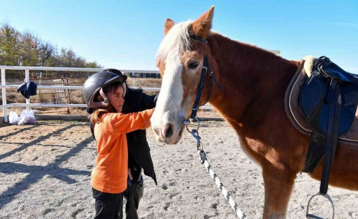 Çocuklar daha sonra merkezde oluşturulan özel alanda, uzman eğitmenler gözetiminde ata binmenin ayrıcalığını yaşadı.