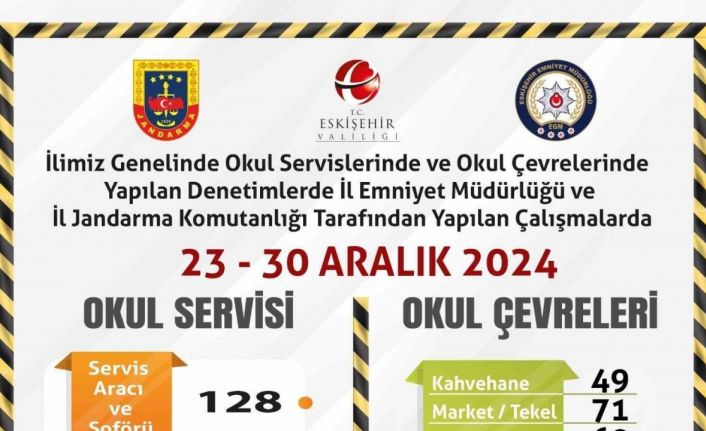 Eskişehir’de polis ve jandarma ekiplerince okul çevrelerinde yapılan çalışmalarda 128 servis aracı ve şoförü ile 306 şahıs denetlendi.