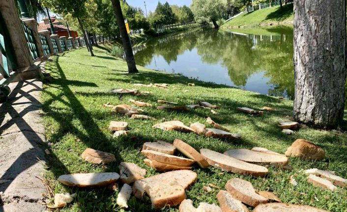 Eskişehir’in en önemli turizm değerlerinden biri olan Porsuk Çayı’nın kenarına gelişigüzel bırakılan ekmek parçaları, kötü görüntülerin yaşanmasına neden oldu.